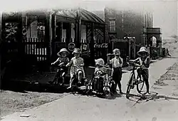 North Ryde's main street is Cox's Road (the lower part of which was previously Coomassie Street).[20] and was originally sandstone-lined to make it easier to haul goods up and down from the wharf on the Lane Cove River to the top of the hill. Cox's Road was named after Joseph Cox who owned land and lived in the area. Coxs Road was spelled with an apostrophe (Cox's) until recent times, though local street signs and Ryde Council still call it Cox's Road. The original North Ryde Post Office on Lane Cove Road was opened in 1885 and in 1908 was moved to Cox's Road, and has since relocated premises within the Cox's Road Shopping precinct at least six times. The North Ryde School of Arts and Literary Institute, built in 1901 on land donated by William Cox of Pomona, became the venue for the annual ball, community meetings, fetes, art exhibitions, dances and culture. Extensions were built in 1907 with the North Ryde Library Branch located here. Cox’s Road has 2 schools a Public and Catholic school, they are both primary schools.The original building was demolished in 1980 and a new Community Centre, School of Arts and Library complex was built.[11]