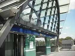 North Ryde railway station is an underground railway station on the Metro North West & Bankstown Line that opened on 29 February 2009.[41] It is located close to the intersection of Epping Road and Delhi Road, near the M2 Motorway. North Ryde station closed in September 2018 for seven months for conversion to a Sydney Metro station on the Sydney Metro Northwest line, which included the installation of platform screen doors.[42] It reopened 26 May 2019. It is serviced by automated Metro driverless trains terminating at Sydenham.