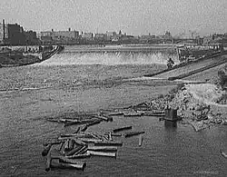 In 1848, Franklin Steele purchased the land that would become St. Anthony and, with the help of Ard Godfrey,[3] built the first commercial mill at Saint Anthony Falls on the east bank.[4] This place marked the original northernmost navigable point of the Mississippi River. The falls provided a dependable power source and soon many mills had been constructed there and the nickname "Mill City" was born. The land west of the Mississippi was opened for settlement in 1852, and when people started settling it, St. Anthony found it had a competitor across the river. St. Anthony was incorporated in 1855, twelve years before neighboring Minneapolis. St. Anthony and Minneapolis existed as separate cities until 1872 when they agreed to merge under the name of Minneapolis. The former St. Anthony became Northeast Minneapolis and a township north of the city incorporated under the name St. Anthony.[5]