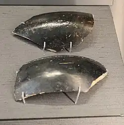 NBPW have also been reported from various sites in Southern Thailand which were engaged in maritime trade activity with India in 1st millennium BCE.[12] However, archaeologist Phaedra Bouvet regards these shards as KSK-Black Polished Wares, not linked technically to NBPW, except from their shape and style, produced between fourth and second centuries BCE, but indeed in contact with real NBPW producing populations.[13]