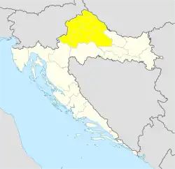 ![]() Map of the NUTS statistical regions of Croatia with the Northern Croatia NUTS-2 region indicated in orange and the City of Zagreb NUTS-2 region indicated separately in purple. | |