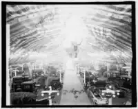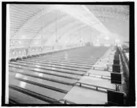 The Convention Hall was used extensively for various activities including a movie theater for silent movies, religious conventions, a roller skate rink, food shows, the Washington Auto Show[4] and dog shows organized by the Washington Kennel Club.[8] It was also used for High School graduations[9] and an armory for the DC National Guard.[10] On June 8-9, 1912, the Convention Hall was used for a banquet and a concert during the unveiling of the Columbus Fountain. The event was a major celebration in the city and gathered some of the most prominent individuals in the city. The building was one of the biggest venues at the time, allowing for large gatherings.[11]