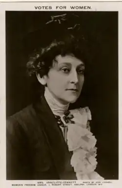 They held a meeting in Bridgeton in November 1913, which was addressed by Maud Arncliffe Sennet, Henry Harben, JP, Bailie Alston and Helen Crawfurd, who "welcomed the NMF as a new order of chivalry: it came to fight for the oppressed and sweated women worker".[1] In the same month they also met in the Synod Hall, Edinburgh, and were addressed by John Cockburn, Mrs Cavendish Bentinck, and Maud Arncliffe Sennett.[6] On 14 February 1914, the Northern Men's Federation for Women's Suffrage was to hold a mass meeting in Memorial Hall, London, and the following day a Trafalgar Square demonstration.[7] The 'War Song" titled 'Justice For Ever' by J. Wilson McLaren was to be sung in full at these events, to the air 'The Macgregors' Gathering' , and the words printed (the day before the first event) in the Women's Freedom League newspaper The Vote: