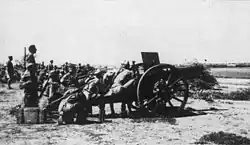 An RAF contingent of six Wellesley bombers and nine Gladiator fighters were thought sufficient to overcome the 17 Italian fighters and 32 bombers believed to be in range.[32] The infantry assembled 1–2 mi (1.6–3.2 km) from Gallabat, whose garrison was unaware that an attack was coming, until the RAF bombed the fort and put the wireless out of action. The field artillery began a simultaneous bombardment, changed target after an hour and bombarded Metemma. The night previous, the 4th Battalion, 10th Baluch Regiment occupied a hill overlooking the fort as a flank guard. The troops on the hill covered the advance at 6:40 a.m. of the 3rd Royal Garwhal Rifles followed by the tanks. The Indians reached Gallabat and fought hand-to-hand with "Granatieri di Savoia" Division and some Eritrean troops in the fort.[33]