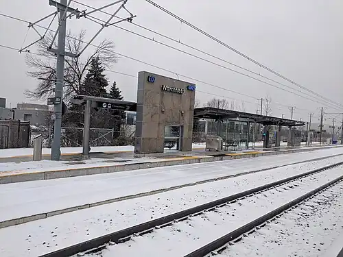 Northfield is a stop on the Region of Waterloo's Ion rapid transit system.[1] It is located on Northfield Drive in Waterloo, between Parkside Drive and the Conestoga Parkway, at the existing railway corridor. It opened on June 21, 2019.