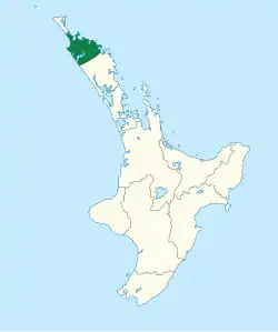 | Distribution of the Northland green gecko on a map of the North Island Known native range