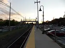 It was designed in a manner similar to stations such as those in Riverhead, Bay Shore, Manhasset, and Mineola. It also served as the south end of a trolley Line into Northport from 1902 to 1924.[5][6] A freight house from Camp Upton was moved to Northport station in April 1922, after the railroad station there was dismantled. A high-level platform and a pedestrian bridge were added during the late 20th century. Northport station features two large parking lots; the larger lot is adjacent to the platform and the smaller lot is on the opposite side of the track. The pedestrian bridge connects the lots, and is wide enough to accommodate a second track and second platform.