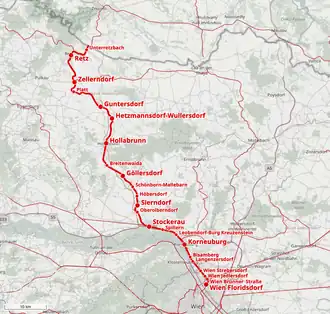 6. ^ ÖBB (7 December 2023). "Wien - Stockerau - Tullnerfeld/ Hollabrunn - Retz - Znojmo" (PDF) (in German). Retrieved 10 March 2024.