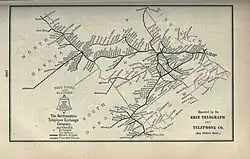 Northwestern Bell Telephone Company was an American telecommunications service provider that served the states of the upper Midwest opposite the Southwestern Bell area, including Iowa, Minnesota, South Dakota, North Dakota and Nebraska. As of late summer 1994, this telephone company is no longer operating.[3] The company did business as US West from 1984 (just after the breakup of the Bell System), was later merged with Mountain Bell and the Pacific Northwest Bell in the late 1980s and then later phased away and dissolved.[4][5] The successors of the Northwestern Bell Telephone were US West (which in turn was replaced with Qwest in 2000 and later under CenturyLink Communications eleven years after that).[6]