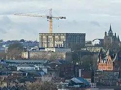 Norwich is one of 48 castles mentioned in the Domesday Survey of 1086.[9] Estimates suggest that between 17 and 113 houses were destroyed in the building of the castle.[10] Excavations in the late 1970s discovered that the castle bailey was built over a Saxon cemetery.[11] The historian Robert Liddiard remarks that "to glance at the urban landscape of Norwich, Durham or Lincoln is to be forcibly reminded of the impact of the Norman invasion".[12] Until the construction of Orford Castle in the mid-12th century under Henry II, Norwich was the only major royal castle in East Anglia.[13]
