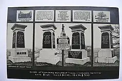 The Green is triangular in shape, with an area of about 1.75 acres (0.71 ha). It is surrounded by shade trees and bordered by Town Street, East Town Street and Elm Avenue. These streets are lined with 18th and 19th houses and shops that face the Green.[2] There are four houses in Norwichtown that were built in the 17th century: the 1660 Bradford-Huntington House, built c. 1660; the Olmstead-Lathrop House, dating to c. 1659-1745; Leffingwell House Museum, built c. 1675; and the Simon Huntington House, built c. 1690. The First Congregational Church, built in the Federal style in 1801, was the third building to house the local congregation.[3][4] Many older homes in the district have been converted to commercial use. The John Mason School is now the central administration for the Norwich Public School System. North of the town's first schoolhouse is the Colonial Cemetery where four Connecticut governors are buried. Four houses from the 17th century remain standing north of the Green area is Meeting House Hill, a cliff of large rocks that is also known as the Meeting House Rocks. It was on this cliff that the village's second and third meetinghouses were established, with the site used as a lookout point.[2] The memorial on top of the rocks and pathway are cared for by the First Congregational Church.