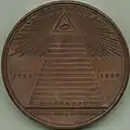 In the July 1856 Harper's New Monthly Magazine, historian Benson John Lossing wrote an article on the Great Seal. To illustrate the article, along with copies of Hopkinson's and Barton's original drawings and his own interpretations of the first committee's designs, he also included an apparently original version of the reverse. This depiction more resembles the Egyptian pyramids, and changed the Eye of Providence to a left eye. Lossing's reverse has heavily influenced all future renditions, including today's official version.[1]