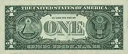 According to Henry A. Wallace (then the Secretary of Agriculture in President Franklin D. Roosevelt's cabinet), in 1934 he saw a 1909 pamphlet on the Great Seal by Gaillard Hunt. The pamphlet included a full-color copy of the reverse of the Great Seal, which Wallace had never seen. He especially liked the motto Novus Ordo Seclorum ("New Order of the Ages"), likening it to Roosevelt's New Deal (i.e., "New Deal of the Ages"). He suggested to Roosevelt that a coin be made which included the reverse, but Roosevelt instead decided to put it on the dollar bill. The initial design of the bill had the obverse on the left and the reverse on the right, but Roosevelt ordered them to be switched around.[1][2] The first bill to contain both sides of the seal was the series 1935 $1 silver certificate.[3]