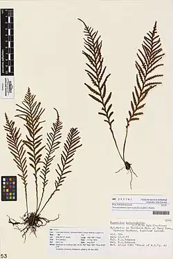 - ^ Stone, IG (1960). "Observations on the gametophytes of Grammitis billardieri Willd. and Ctenopteris heterophylla (Labill.) Tindale (Grammitidaceae)". Australian Journal of Botany. 8 (1): 11. doi:10.1071/bt9600011. ISSN 0067-1924.