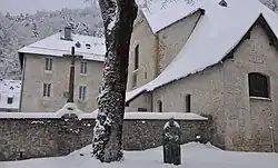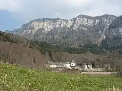 The monastery is about 7 kilometres (4.3 mi) from Voreppe along a winding forest road.[1] It is located on a plateau overlooking Voreppe at an altitude of 940 metres (3,080 ft), which is often snow-covered in winter.[2] The monastery is set in a beautiful location in the Chartreuse Mountains. It has a cemetery and a Romanesque church.[3]