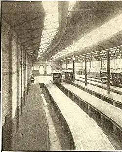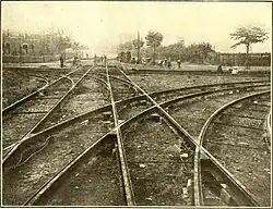 By August 1901 the Arkwright Street and Station Street relaying was well under way, together with the building of a new depot at Trent Bridge, comprising 11 roads with accommodation for 80 cars. For a short period the Trent Bridge horse tram service was cut into two parts while the Midland Railway strengthened their bridge under Carrington Street; the bridge over the adjacent canal was rebuilt at the same time. A further 32 cars of the original type were delivered, but with 2x35 h.p. motors instead of 2x25 h.p. motors.[1]