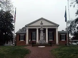Nottoway County Courthouse is a historic courthouse building located at Nottoway, Nottoway County, Virginia. It was built in 1843, and is a three-part Palladian plan building in the Jeffersonian or Roman Revival style brick structure. It has a temple-form main block and features a tetrastyle Tuscan order portico. It has flanking one-story wings.[3]