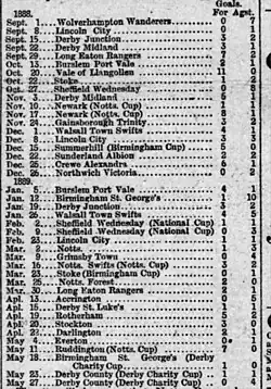 - ^ "Nottingham Rangers v Burton-on-Trent Alma". Nottinghamshire Guardian: 12. 29 October 1880.