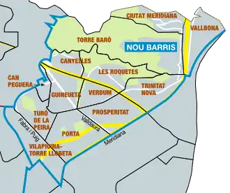 ![]() Districts of Barcelona, Nou Barris coloured red | |