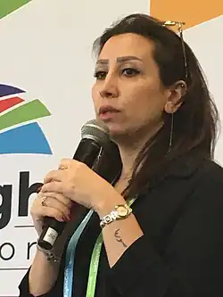 Noura Ghazi (نورة غازي), or Noura Ghazi Safadi (نورة غازي صفدي) (born September 30, 1981) is a Syrian human rights lawyer and activist.[1] Her husband, the Syrian-Palestinian Bassel Khartabil (Arabic: باسل خرطبيل), or Bassel Safadi (Arabic: باسل صفدي) was an open-source software developer and one of Syria's leading pro-free speech and democracy activists.[2] He was arrested by the Syrian government in 2012 and executed in 2015.[3]