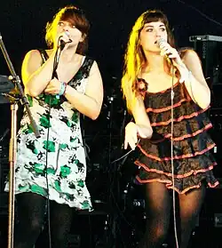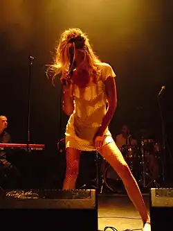 Several of the vocalists who have performed with Nouvelle Vague have subsequently found success as solo singers.[2] Libaux has attributed this fact to Collin's talent for discovering female singers: "I think he is the best talent scout in the world for female singers. All the female singers we have worked with are just beginning their career. For these girls to be part of Nouvelle Vague for three years – meaning you play 200, 250 gigs – I think it's a very good way to learn about this job."[2] The band's singers have included Camille,[14] Phoebe Killdeer, Mélanie Pain, Nadéah Miranda, Gerald Toto, Helena Noguerra, Liset Alea, Mareva Galanter, Jenia Lubich and Élodie Frégé.[15] In 2010 the band released a compilation featuring solo work by several of their vocalists, under the title Nouvelle Vague: The Singers.[16] This includes Phoebe Killdeer & the Short Straws's "Fade Out Lines", which later became a major international hit when it was remixed by French producer The Avener, topping the charts in Germany, Spain, and Austria, and reaching number 3 in France and number 6 in Italy.[17]