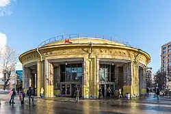 Construction of the station began shortly after the launch of the second stage in 1938. Despite World War II the station was opened on time. Later in 1978 the platform was lengthened. This part is in a more modern style than the rest of the station.