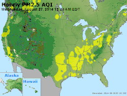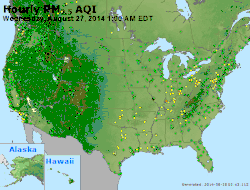 PM2.5 AQI map, calculated utilizing NowCast, courtesy US EPA