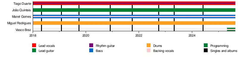 - Tiago Duarte – lead vocals and rhythm guitar (2018–present)