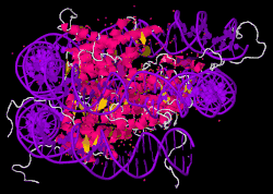 - ^ Harp JM, Hanson BL, Timm DE, Bunick GJ (December 2000). "Asymmetries in the nucleosome core particle at 2.5 A resolution". Acta Crystallographica. Section D, Biological Crystallography. 56 (Pt 12): 1513–1534. doi:10.1107/s0907444900011847. PMID 11092917.