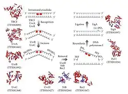 - ^ Truglio JJ, Croteau DL, Van Houten B, Kisker C (February 2006). "Prokaryotic nucleotide excision repair: the UvrABC system". Chemical Reviews. 106 (2): 233–252. doi:10.1021/cr040471u. PMID 16464004.