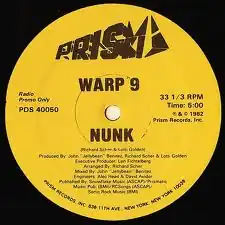 "Nunk" was code for NUNK= N-ew wave + f-UNK.[5] The record was characterized by a robotic chant, syncopated rhythms and arcade-sounding, sci-fi influenced synths from funky keyboard riffs to eerie string lines.[6] "Nunk"'s popularity helped Warp 9 develop a devoted following in the New York metropolitan area, leading to a worldwide deal with Island Records (Prism Records/Island Records in the U.S.) on which their debut LP, It's a Beat Wave and subsequent singles were released.[7] The producers, Lotti Golden and Richard Scher produced dub mixes and instrumental versions of "Nunk" creating club and remix possibilities.