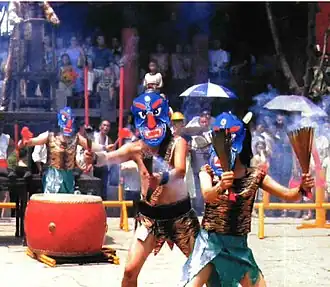 Nuo theatre,[1][2] Nuo drama,[3] Nuo opera,[4] or Nuoxi (traditional Chinese: 儺戲; simplified Chinese: 傩戏; pinyin: nuóxì) is a traditional theatrical art popular in many regions of China. Characterized by its special features such as ferocious masks, unique dresses and adornments, the strange language used in performance, and mysterious scenes, Nuo theatre has been selected as one of the non-material cultural legacies of China. The opera is a religious performance intrinsic to the culture of Nuoism, a type of Chinese folk religion. The purpose of Nuo theatre is to drive away devils, disease and evil influences, and also to petition for blessings from the gods. Singing and dancing are included in Nuo theatre and performers wear costumes and masks.