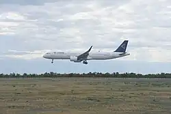 The first of Hungarian-based Wizz Air flight from the airport took place in 2017, using a single 186-seat Airbus A320 aircraft destined for Budapest.[49] The service was one of the first to Hungary. Also in 2017, Air China and LOT Polish Airlines began services by announcing routes to Beijing and Warsaw respectively.[50][51] The airport has received occasional visits by the Boeing 787 Dreamliner. In 2019, FlyArystan became the first major low-cost airline to establish a hub at the airport.[52] In 2019, SCAT Airlines made the first direct flights from Astana to Prague, Tokyo, and Ulaanbaatar but discontinued services in 2020.[53][54][55] On 5 December 2022, AJet launched twice weekly flights to its hub at Ankara using Boeing 737 aircraft.[56] Recently, more flights have been added to traffic between Kazakhstan and Turkey. In March 2023, Azerbaijan Airlines (AZAL) introduced a short-haul flight from Astana to Baku.[57]