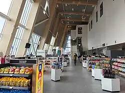 The new terminal building and accompanying apron was opened in summer 2024, which introduced security checks for the first time ever at Nuuk Airport. Subsequently, the old terminal and control tower were demolished in September 2024, as they were located too close for the new runway operations.[32] The new control tower was commissioned in the same month.[33] The only parts of the existing airport that exist after the expansion are Air Greenland's maintenance hangars, the airport's old service building and the original apron. The original runway was removed, rebuilt and extended.