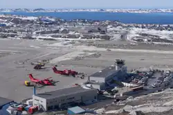 Nuuk Airport (Greenlandic: Mittarfik Nuuk, Danish: Nuuk Lufthavn, formerly Godthåb Lufthavn; (IATA: GOH, ICAO: BGGH)) is an international airport serving Nuuk, the capital of Greenland. The airport is the hub and technical base for Air Greenland, the flag carrier airline of Greenland.[3] International routes are also provided by Icelandair on a year-round basis as well as SAS and United Airlines seasonally.[4][5]