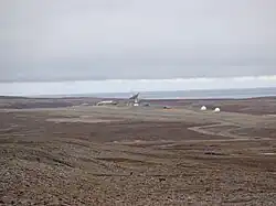 The airport was largely used to fly to Longyearbyen, although a limited number of flights were undertaken to the mainland. In addition to magnetic tapes, the aircraft were used to transport personnel and cargo, particularly during winter.[24] Services were originally operated by Ski- og Sjøfly, but were later taken over by Svalbard-Fly,[25] both of which had their Cessna 185 aircraft stationed in Ny-Ålesund.[10] On 3 June 1970, a miner with a fractured skull was transported by ship from Longyearbyen to Ny-Ålesund and sent on board a Piper PA-31 Navajo to the mainland for treatment.[26] After the telemetry station closed in 1974, the airport was taken over by Kings Bay.[27] During this period, Longyearbyen was served by a planed section of tundra in Adventdalen.[28]