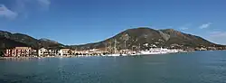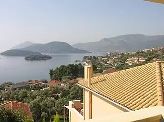 Nydri (Greek: Νυδρί) is a town and a community on the eastern coast of the island of Lefkada, Greece. It is part of the municipal unit Ellomenos. The community includes the small village Rachi. The Greek National Road 42 (Vasiliki - Lefkada (city) - Amfilochia) passes through the town. Nydri is a popular tourist town. In the sea in front of Nydri are several small islands including Madouri, Skorpios, Skorpidi and Sparti. The island Skorpios is the property of the Ribolovlev family.