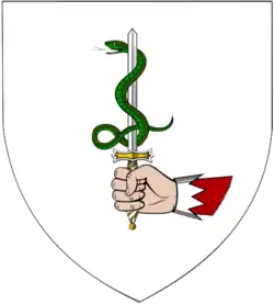 The O'Donovan family is an ancient Irish noble family. Their patronymic surname derives from Irish Ó Donnabháin, meaning the grandsons or descendants of Donnubán, referring to the 10th century ruler of the Uí Fidgenti, Donnubán mac Cathail. During the 12th and 13th century, O'Donovan relations relocated from the Bruree/Croom area south to the Kingdom of Desmond and to Carbery, where they were a ruling family for centuries and played a role in the establishment of a feudal society under the MacCarthys. Other septs retreated into the southeast corner of the Ui Fidgheinte territory, reaching from Broadford/Feenagh to the Doneraile area. The northern septs of the O'Donovans did not use a White Rod as the family's position in their original territory was vastly eroded, while several septs of O'Donovans in the southwest territories were semi-autonomous flatha under the MacCarthy Reagh dynasty in Carbery, with the most notable being local petty kings.[3] The family were counted among the leading Gaelic nobility of Ireland.