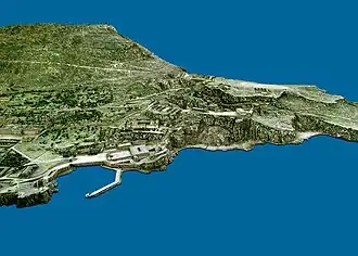 O'Hara's Tower was in Gibraltar, the British Overseas Territory at the southern end of the Iberian Peninsula.[3][4] The watchtower was located at the summit of the Rock of Gibraltar near what is now O'Hara's Battery in the southern end of the Upper Rock Nature Reserve, at an altitude of 426 metres (1,398 ft).[5][6][7] It was positioned at the southern terminus of the current O'Hara's Road, known as O'Hara's Point.[8][9]