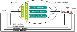 Throughout the social core process, the humans in an organization work towards the goals of a system. In the SCP, the individual core process and the task core process are linked such that synergy effects are yielded from collaboration.