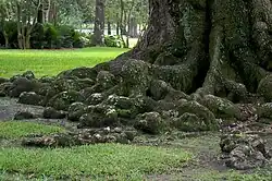 Antoine, a slave and gardener of Oak Alley Plantation, was a master of the techniques of grafting and after trial with several trees, succeeded in the winter of 1846 in producing a variety of pecan that could be cracked with one's bare hands; the shell was so thin it was dubbed the 'paper shell' pecan. It was later named the Centennial Variety when entered in competition at the 1876 Centennial Exposition in Philadelphia, where it won a prize.[5] The trees may be found throughout southern Louisiana, where the pecan was once a considerable cash crop. Although Antoine's original trees were cleared for more sugar cane fields after the Civil War, a commercial grove had been planted at nearby Nita Plantation. Unfortunately, the Nita Crevasse (river break) of 1890 washed away Nita Plantation and all remains of the original Centennial pecans.[6]