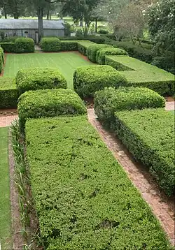 The grounds include a formal garden, installed by Josephine Stewart, that separates the mansion from the old garage. The old car garage is the temporary site for the Sugarcane Theater, where the history of sugarcane cultivation is explained through a video and exhibits. A blacksmith shop and the Stewart graveyard are also on the grounds.