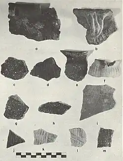 Excavations at the site yielded prehistoric to Protohistoric and early Historic artifacts, house structures, pit features, plant remains (1979 excavations only) and animal bone.[1]