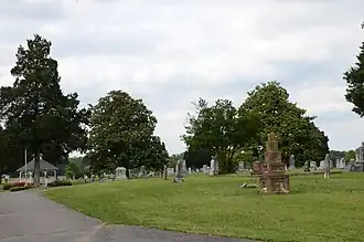 The historic portion of the cemetery, roughly 3.5 acres (1.4 ha) at its center,[2] was listed on the National Register of Historic Places in 2009.[1]