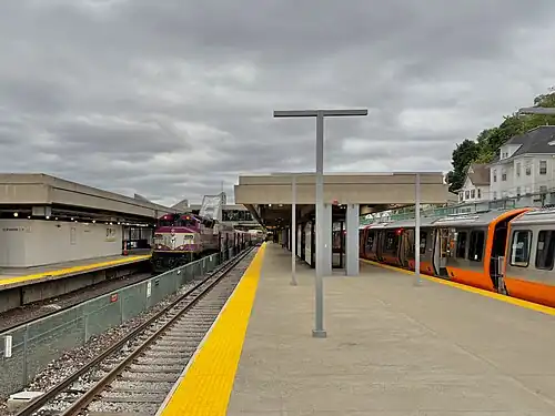 | Platforms | 1 island platform (Orange Line) 1 side platform (Commuter Rail) | |||||||||||||||