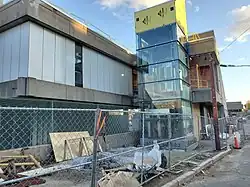 The existing elevators, which connect the fare mezzanine to the Orange Line platform and the busway, were built with the station and renovated in 1987.[22][23] (This made Oak Grove the first Orange Line station to be accessible.)[24][25] Three elevators are being added to the station – an elevator between Washington Street and the mezzanine, a redundant elevator between the mezzanine and the platform, and a redundant elevator between the busway and the mezzanine – and one existing elevator renovated.[26] The MBTA awarded a $22.5 million construction contract in August 2019, and work began that December.[27][28][26] The Washington Street elevator opened on January 31, 2021, followed by the first new platform elevator in August.[29][30] The new east elevator opened in May 2022, with the replacement platform elevator completed that November.[31]