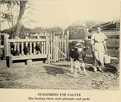 Oak Hill was developed to provide training in farming and domestic trades, and to teach Christianity to the former Choctaw slave children.[3] According to the school's founders, "[These young people] are transplanted for a time, where they may receive Bible instruction, industrial training and a foretaste of the privileges of an enlightened christian civilization".[4] As was typical of American Indian boarding schools the farming model was implemented, where students both learned agricultural and animal husbandry skills and grew their own food.[5] The students cultivated land, hauled water (as their well had run dry), and tended large herds of pigs and cattle.[6] In the early days, focus was on vocational training and the educational portion was minimal, as schooling beyond an eighth grade education was not offered.[7]