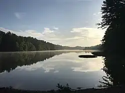 Oak Mountain was created when the State Land Act of 1927 granted the park the 940 acres (380 ha) between Double Oak Mountain and Little Oak Ridge. From 1934 to 1941, the park saw improvements made by the Civilian Conservation Corps (CCC) and the Works Progress Administration. Remnants of the CCC era—foundations, bridges and other infrastructure, often made of stone quarried from within the park—can be seen throughout the park. In 1943, the National Park Service (NPS) deeded the state park approximately 8,000 acres (3,200 ha) of surrounding land that the NPS had acquired in the 1930s.[3] Further improvements beginning in 1971 saw development of the golf course, pro shop, cottages, administrative buildings, demonstration farm and campgrounds in the area of Dry Brook basin and adjacent to the park's lakes.[4]