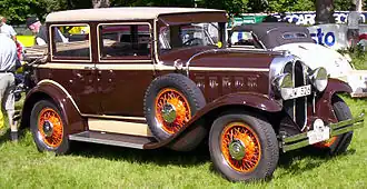 The Oakland Six was the first six-cylinder engine offered by the Oakland Motor Company in 1913 which became a division of General Motors in 1909.[2][3][4][1] The Oakland Six was offered in many different model names that changed every year, along with several body styles and engine displacements until 1929, when the V8 was reintroduced, then in 1931 Oakland was renamed Pontiac. When Oakland became a division of GM and introduced the Oakland Four, Oldsmobile and Buick shared bodywork and chassis of their six-cylinder models with Oakland. When Chevrolet became part of GM in 1917, Oakland chassis and bodywork were shared with Chevrolet.[1] Manufacture of the Oakland was completed in Pontiac, Michigan.[1]
