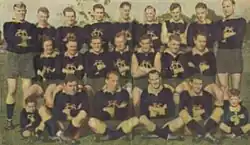 Oakleigh wore purple guernseys with a gold monogram, thus giving them their original nickname, the Purple and Golds.